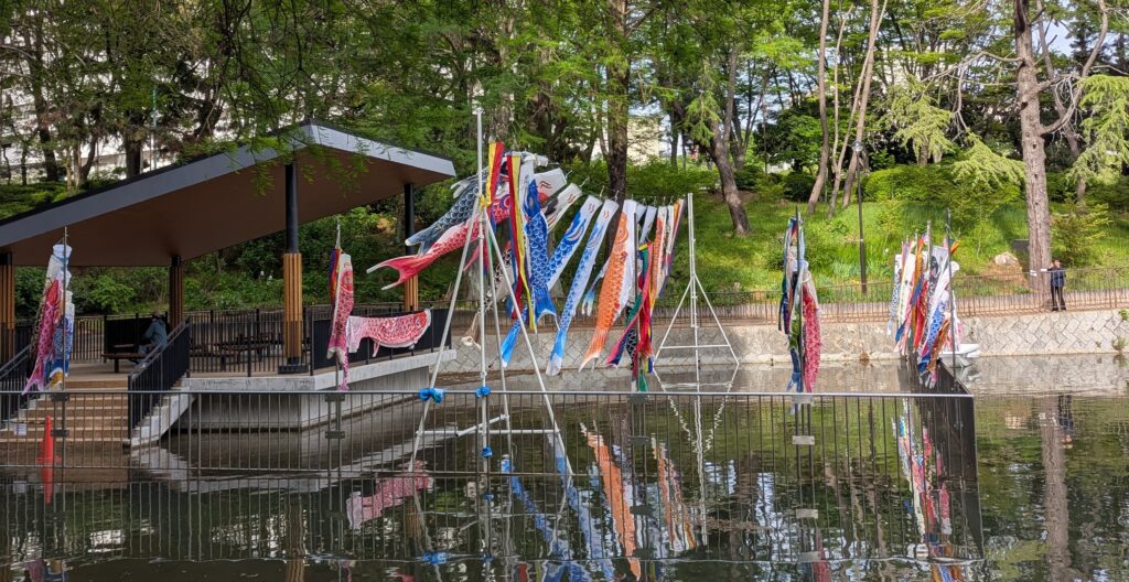 吹田市桃山公園で、日本の伝統行事・風物詩である「鯉のぼり」が公園近隣の皆様からの寄付や貸し出しで、4月26日(土)から5月10日(日)まで97匹が泳いでいます。