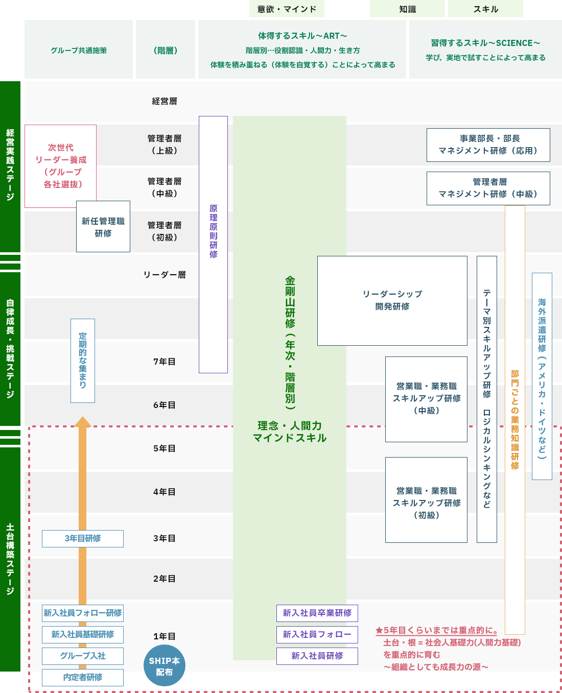 また、各年次・階層に必要な知識・スキルも身に付けていただけるよう、